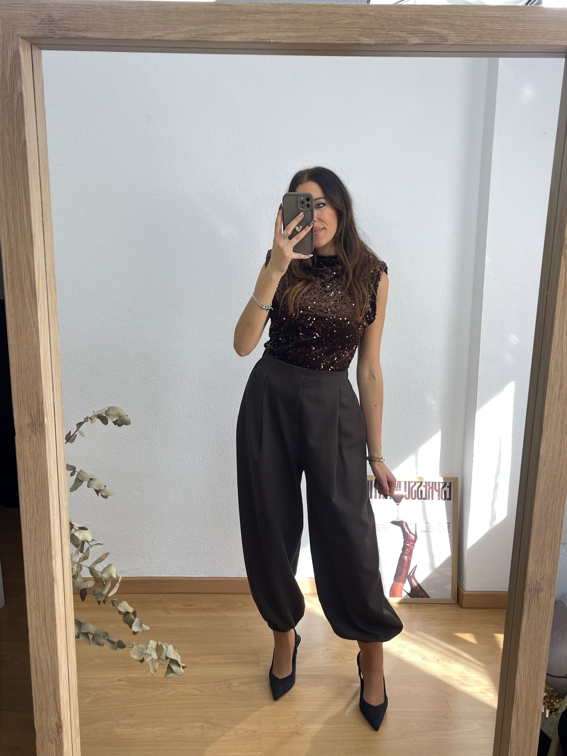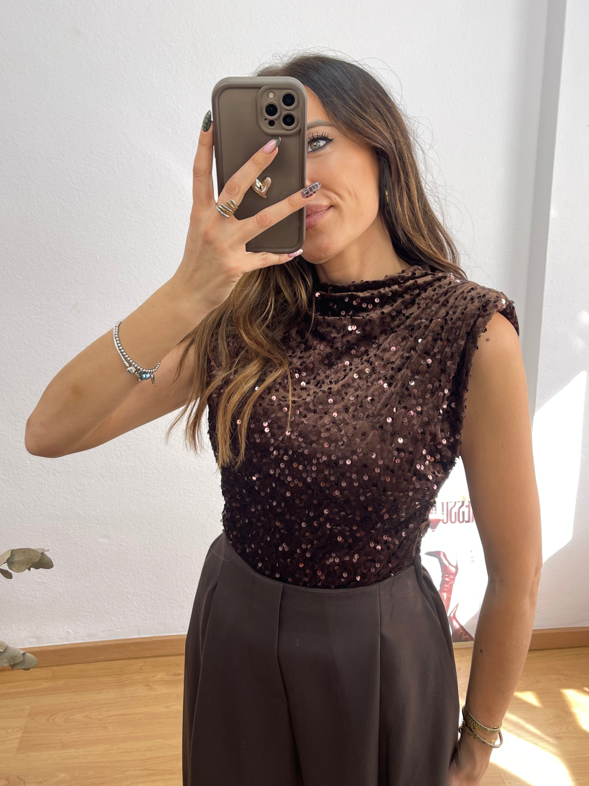 Top Lentejuelas Marrón